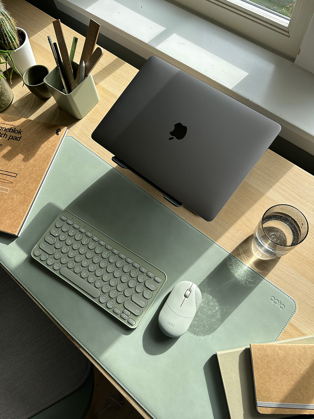 Bij Aptiq vind je werkplekaccessoires die naadloos passen in je interieur dankzij hun minimalistische Scandinavische design. Kies uit onze kleurcollecties, zoals Misty Green en Lake Blue, om je werkplek zowel functioneel als esthetisch aantrekkelijk te maken.